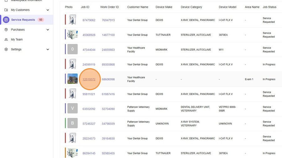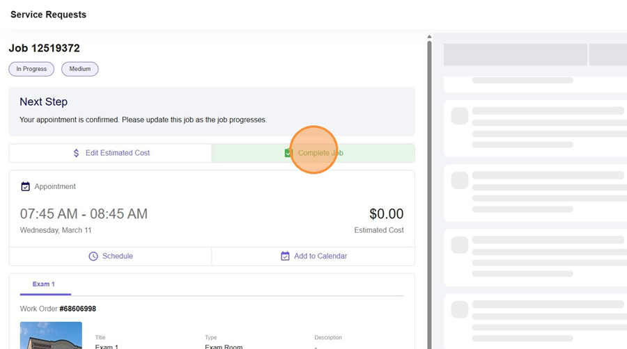 - First, you're going to go to your service request section and identify the request that you are looking to complete and invoice.