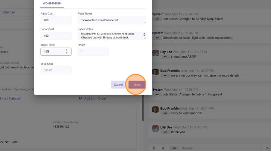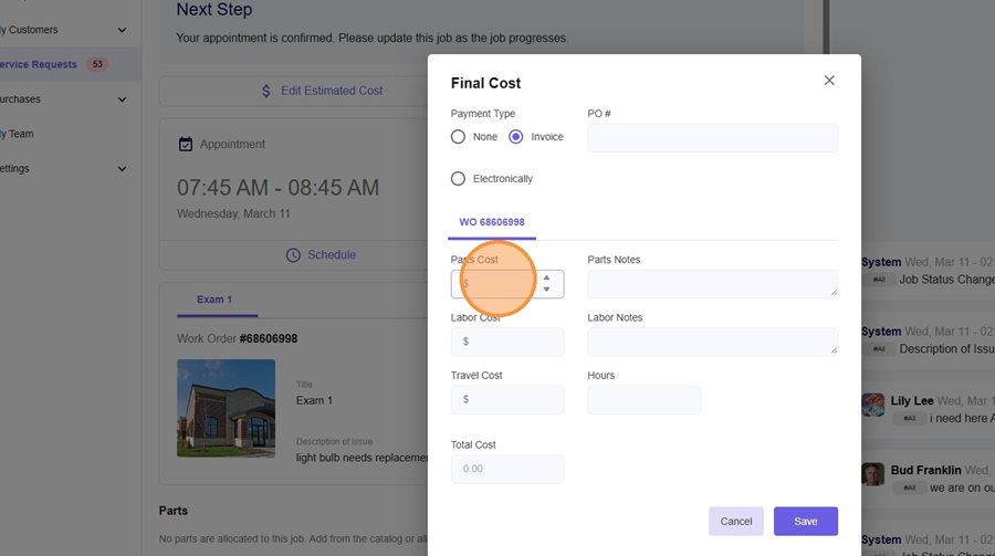 - You'll find your total cost under the total cost section which calculates from the above line items. This is the amount that you will get paid for the service is completed. Once you click save.