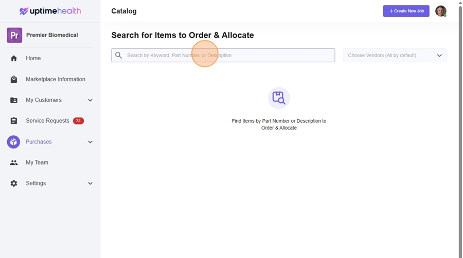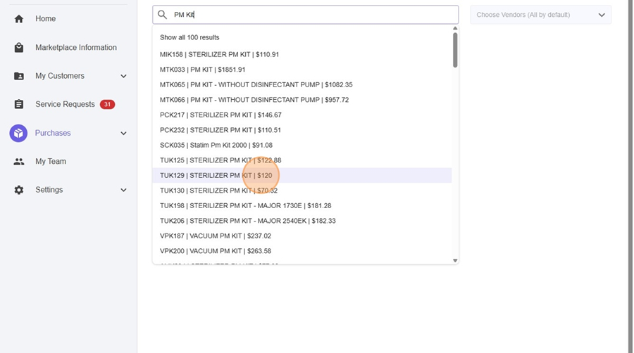 - Add your part number, keyword or description. You can also search by choosing vendor on the right hand side.