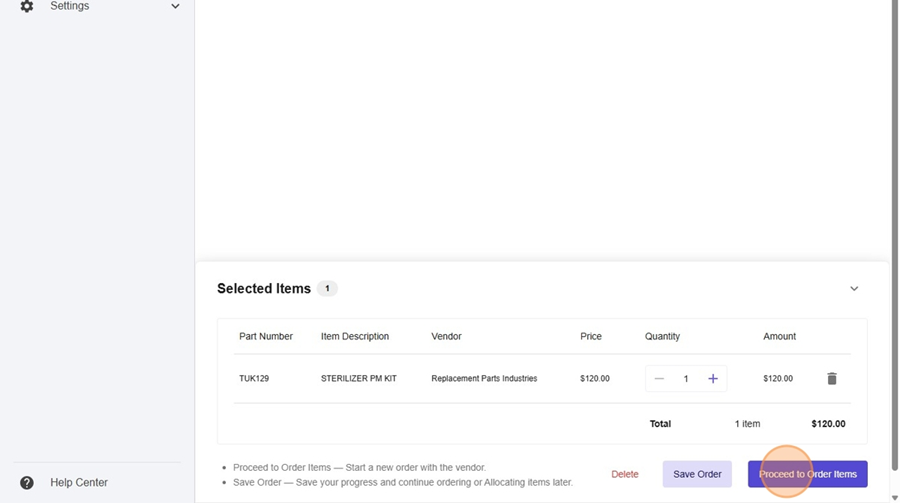 - Select Proceed to order items.
