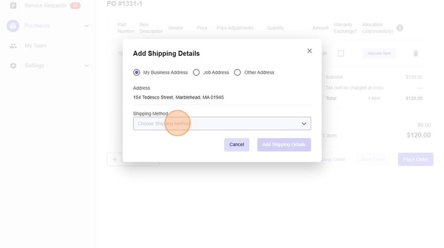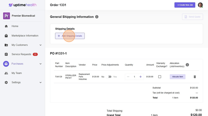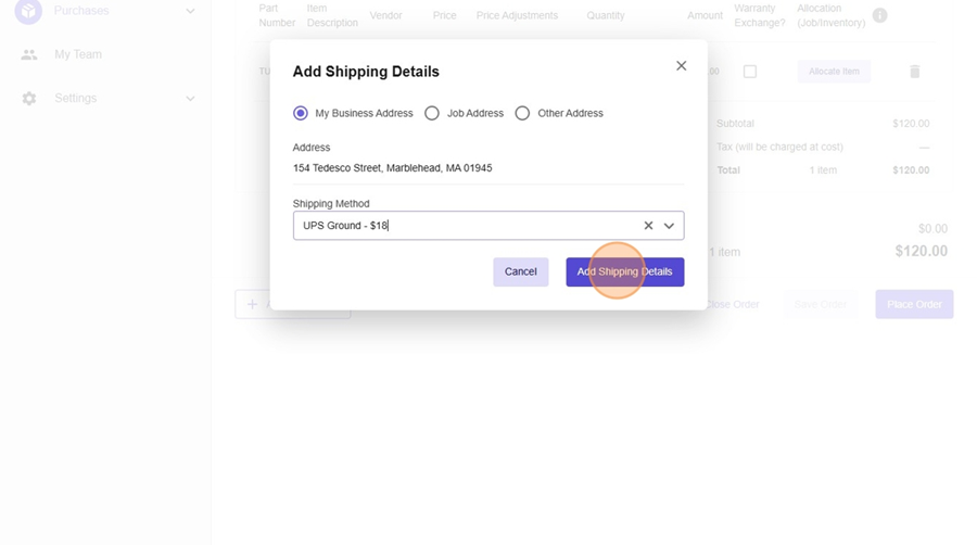 - Select Add Shipping Details.