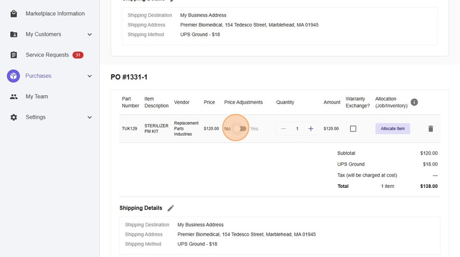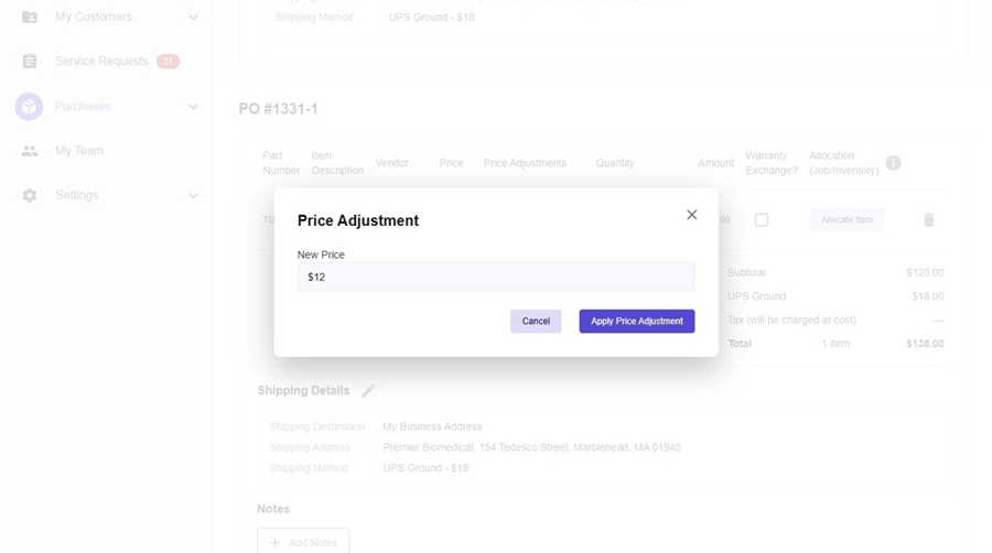 - By placing the order with a price adjustment, this will prompt the Purchasing Team to submit a price adjustment or communicate the new approved adjusted price to your team before proceeding with the order.