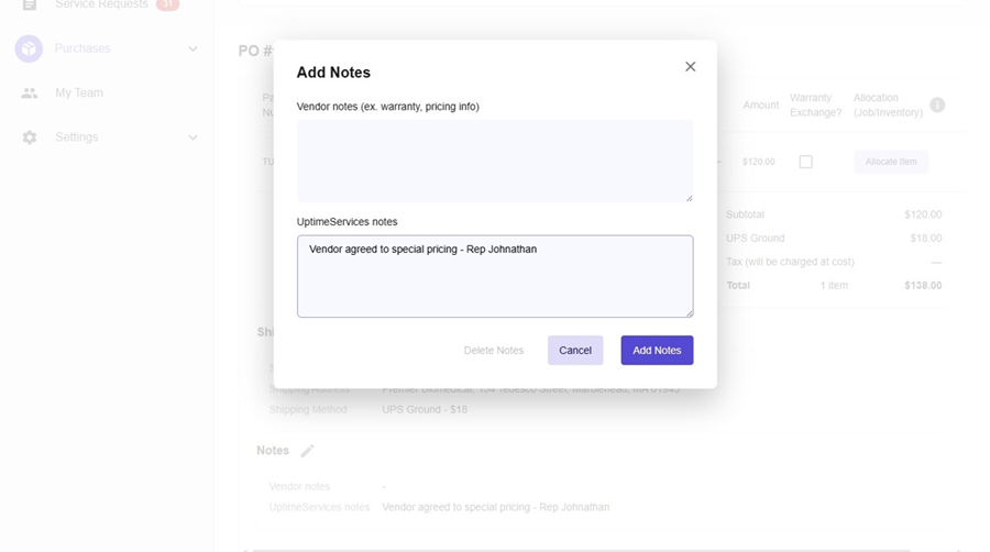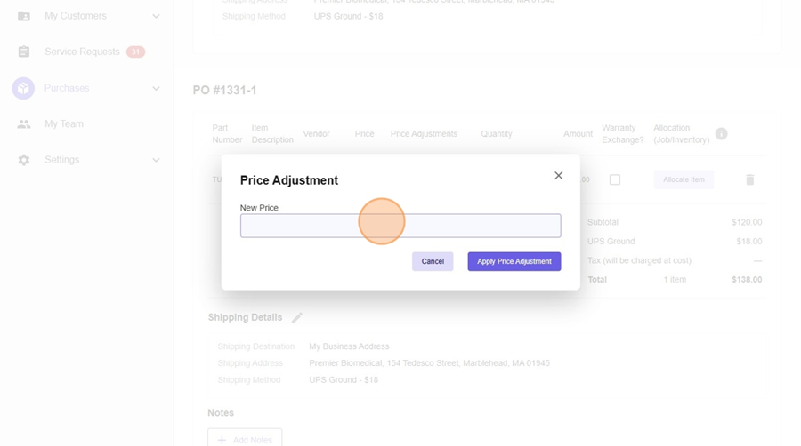 - Add specific details to why you requested a price adjustment. For example, you can add something around a discount provided by the vendor or other information.
