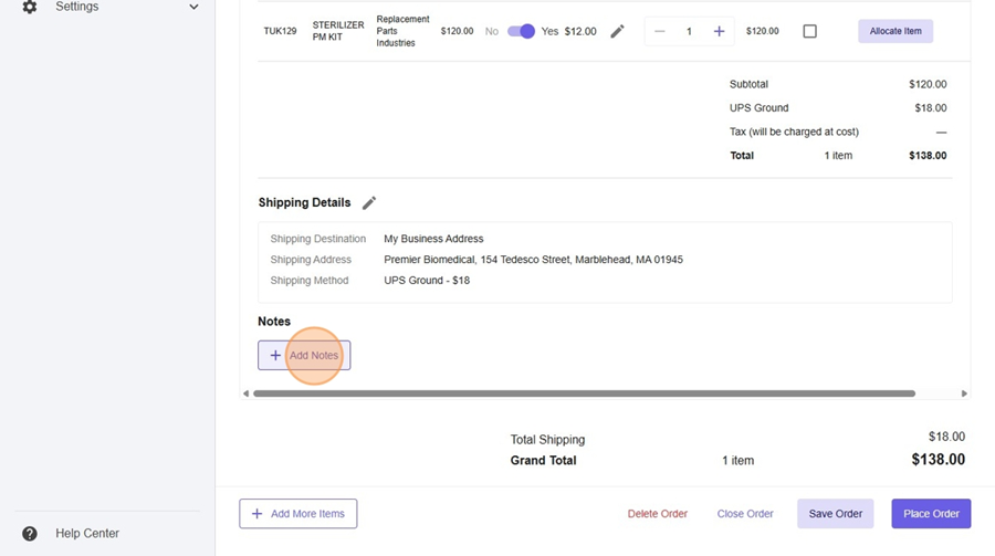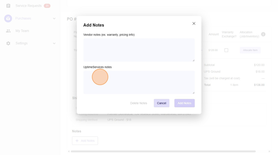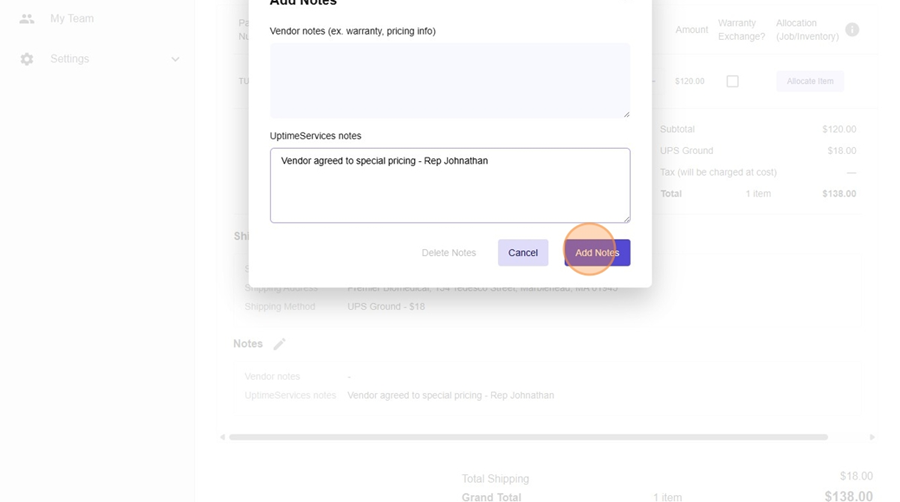 - Click "Add Notes"